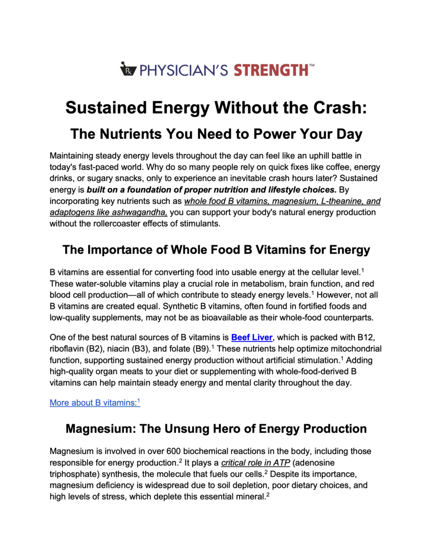 Maintaining steady energy levels throughout the day can feel like an uphill battle in today’s fast-paced world. Why do so many people rely on quick fixes like coffee, energy drinks, or sugary snacks, only to experience an inevitable crash hours later? Sustained energy is built on a foundation of proper nutrition and lifestyle choices. By incorporating key nutrients such as whole food B vitamins, magnesium, L-theanine, and adaptogens like ashwagandha, you can support your body’s natural energy production without the rollercoaster effects of stimulants.