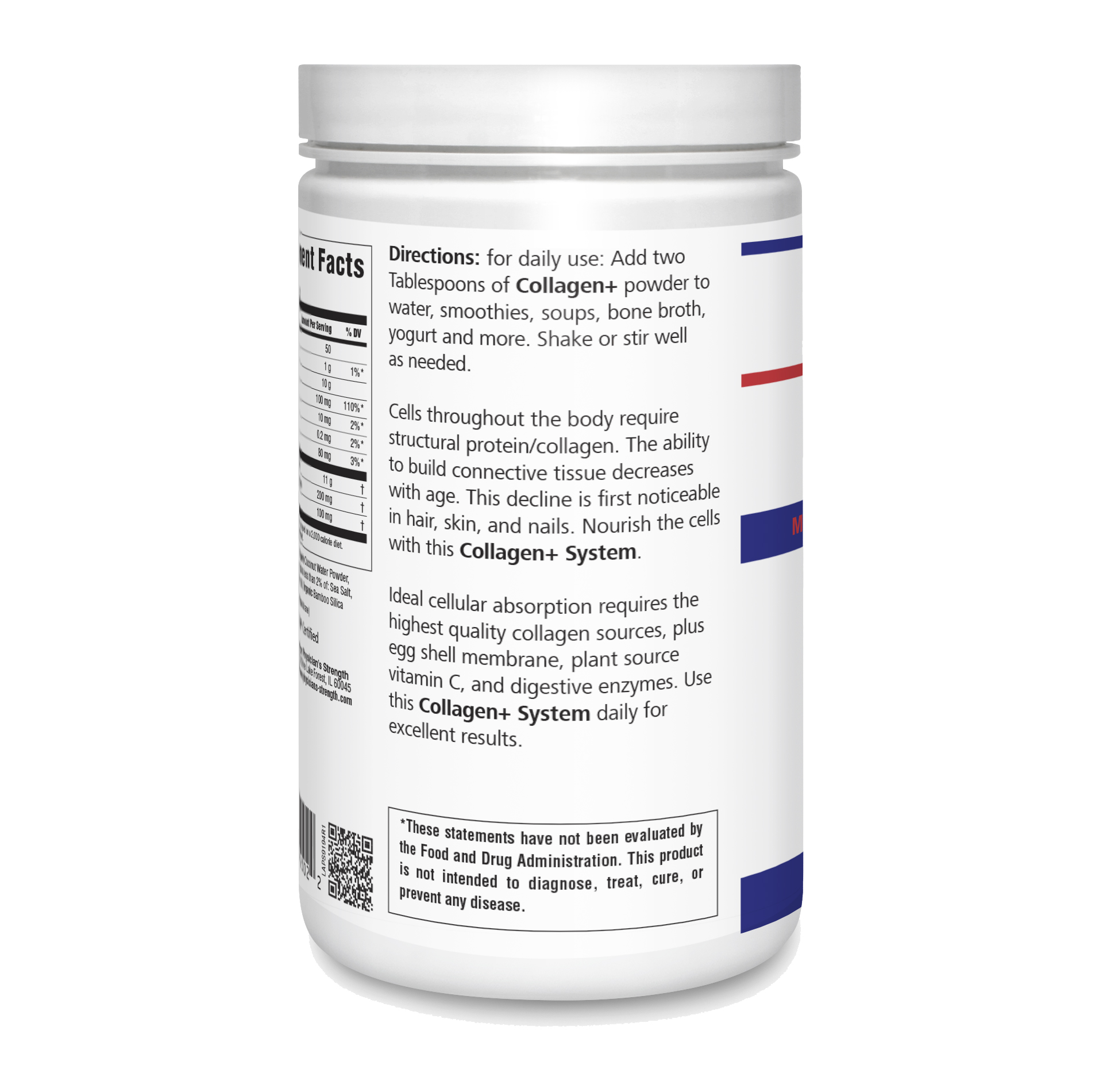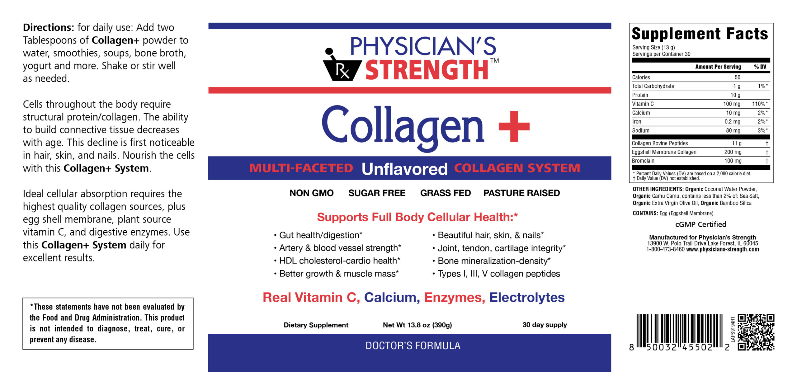 Collagen + is more than a collagen powder – it’s a complete collagen delivery system. Most collagen products stop at peptides and leave the rest to chance. Collagen + is intentionally formulated with the synergistic co-factors your body requires to support collagen synthesis, absorption and utilization – delivering 11 g of bioavailable collagen per serving from grass-fed, pasture-raised sources.